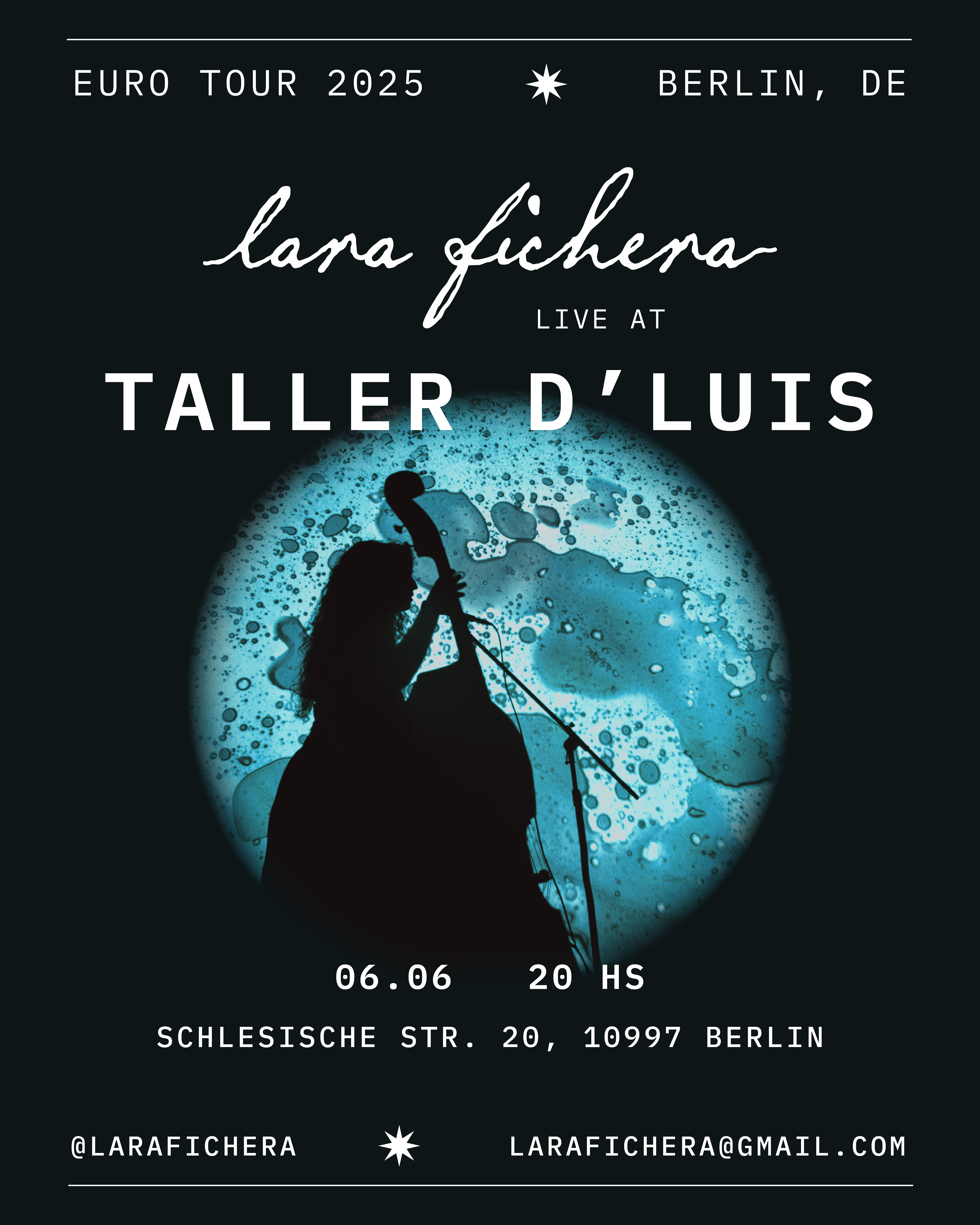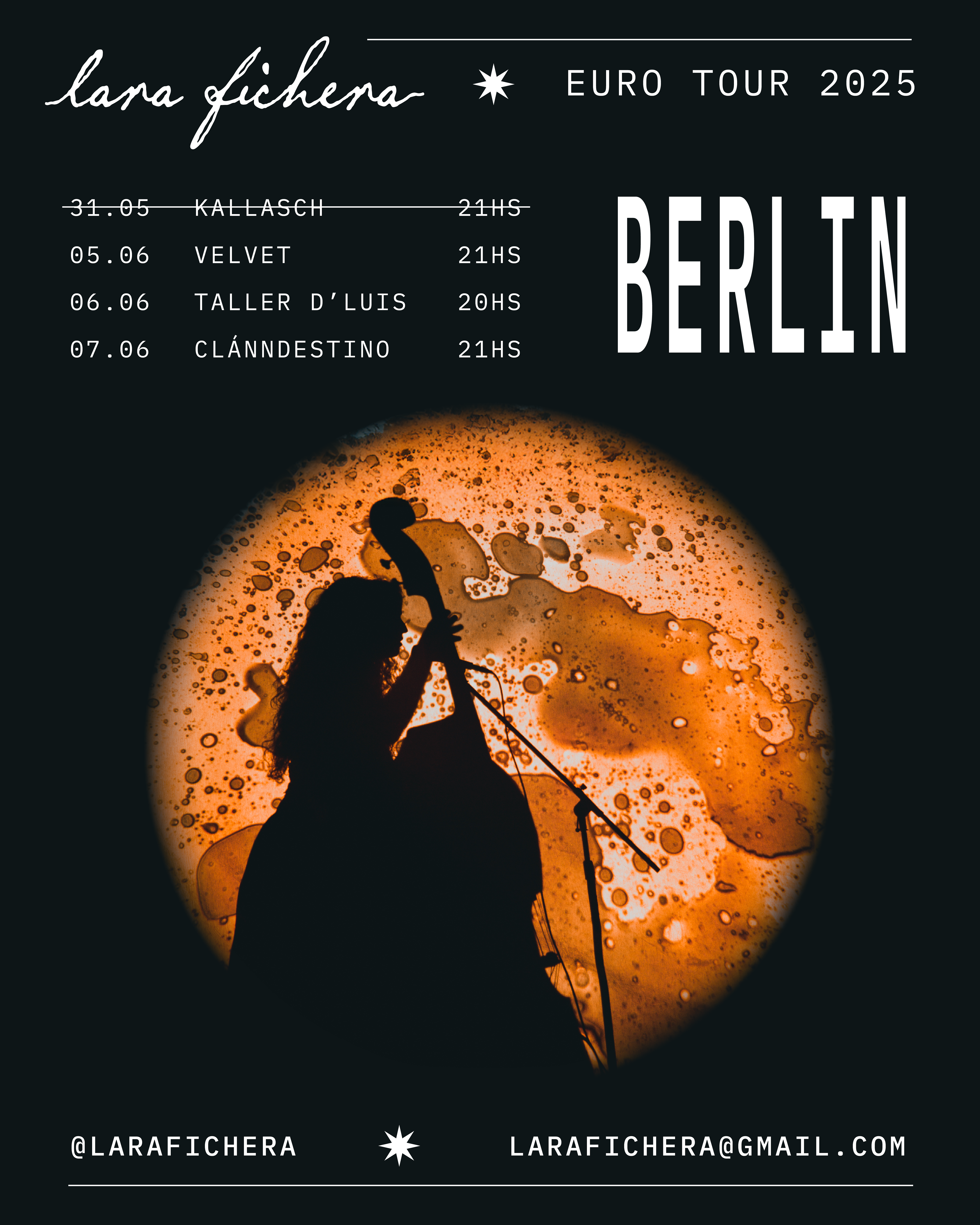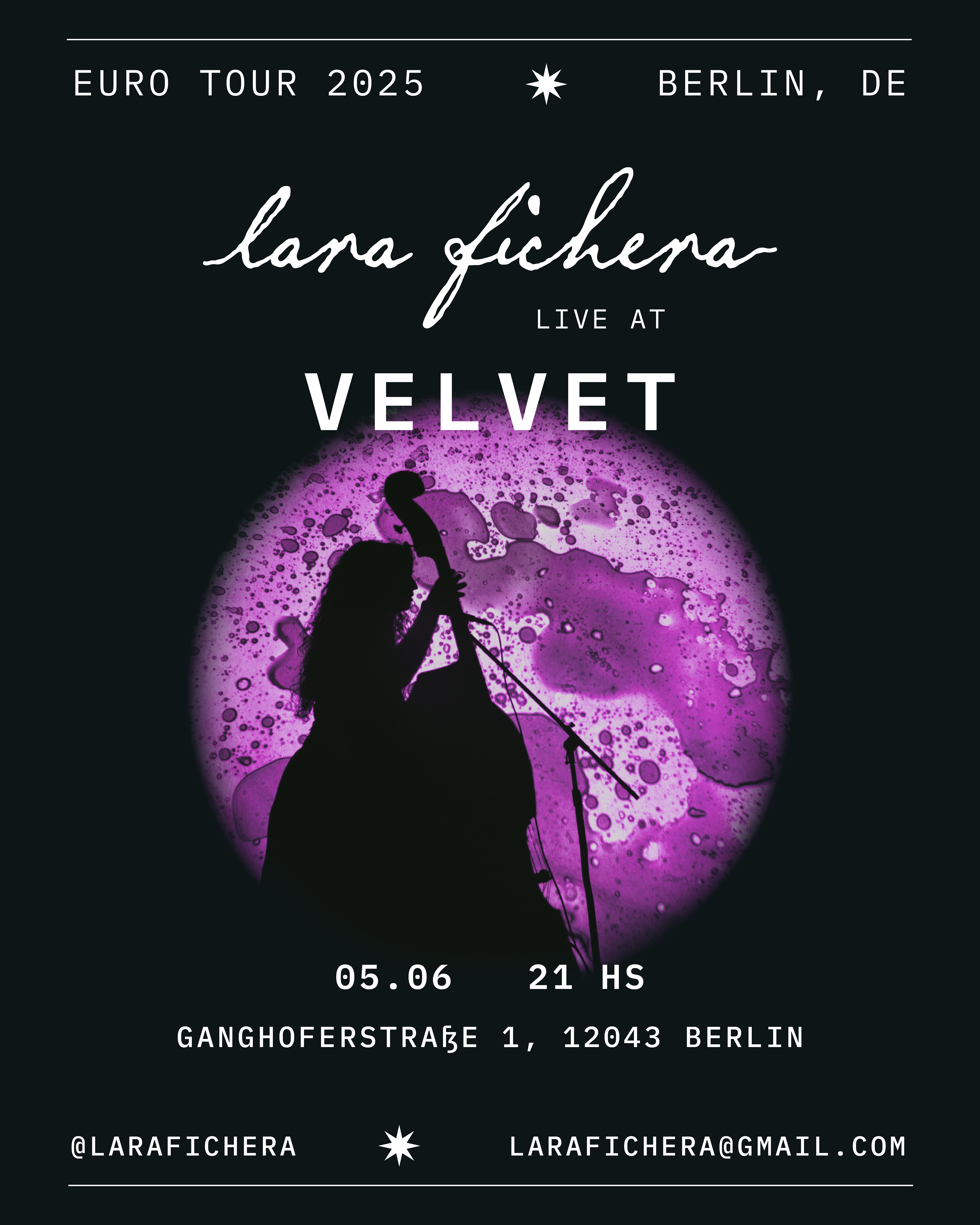 tour art direction & posters for Lara Fichera. Berlin + Paris, 2025.