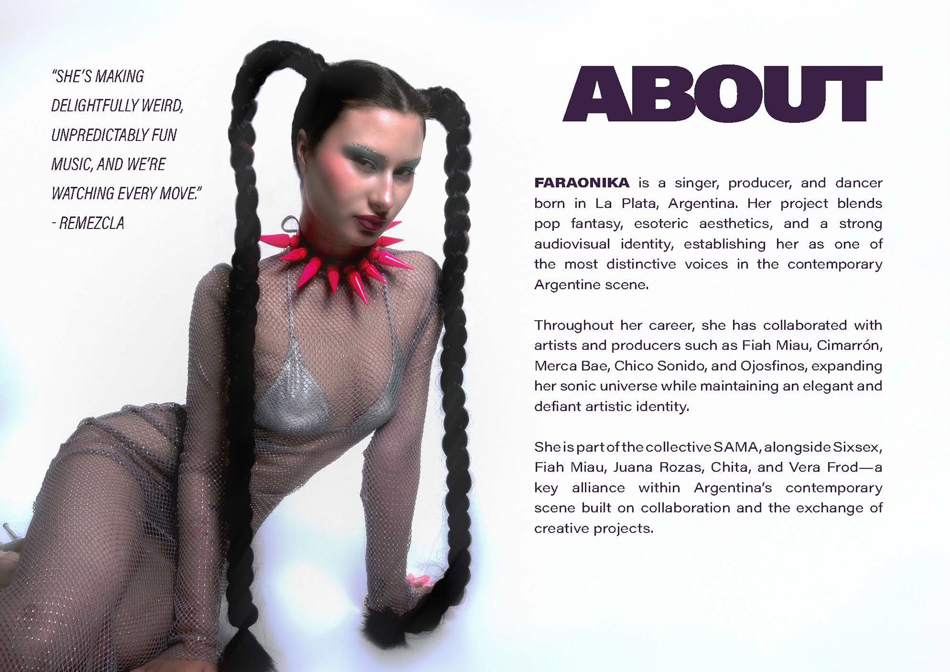 tour management, bookings, press kit design and promo for Faraonika. Europe, 2026.