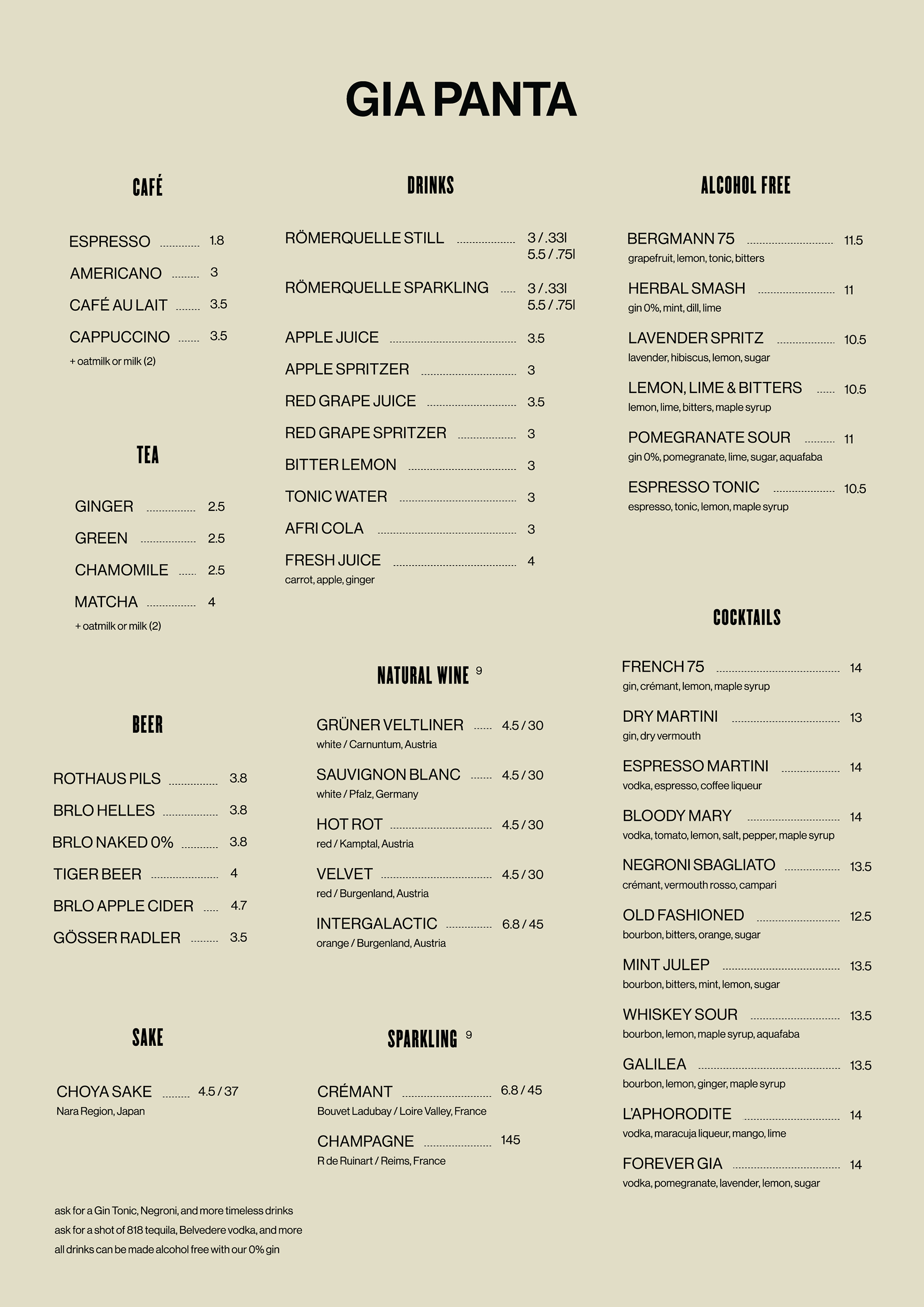 Menu Design, Promotional Photography, and Video Edit for GIA PANTA. Berlin, 2024.