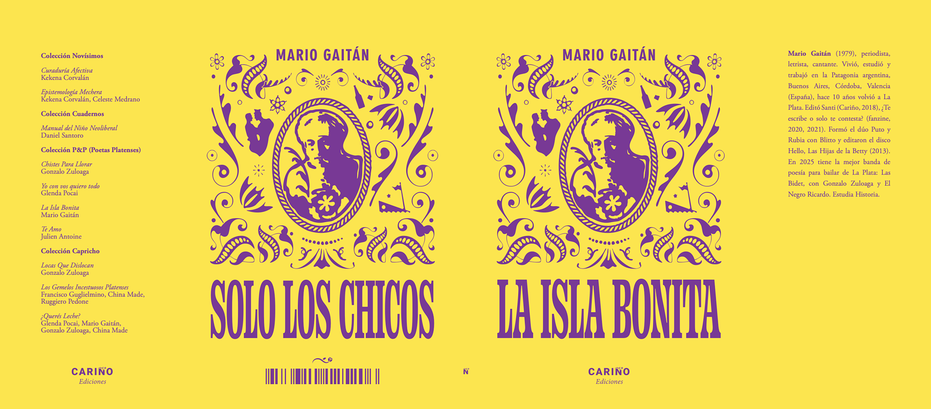 Cover art & book besign for the first edition of "La Isla Bonita / Solo Los Chicos" by Mario Gaitán for Cariño Ediciones. Villa Elisa, Buenos Aires, 2022.