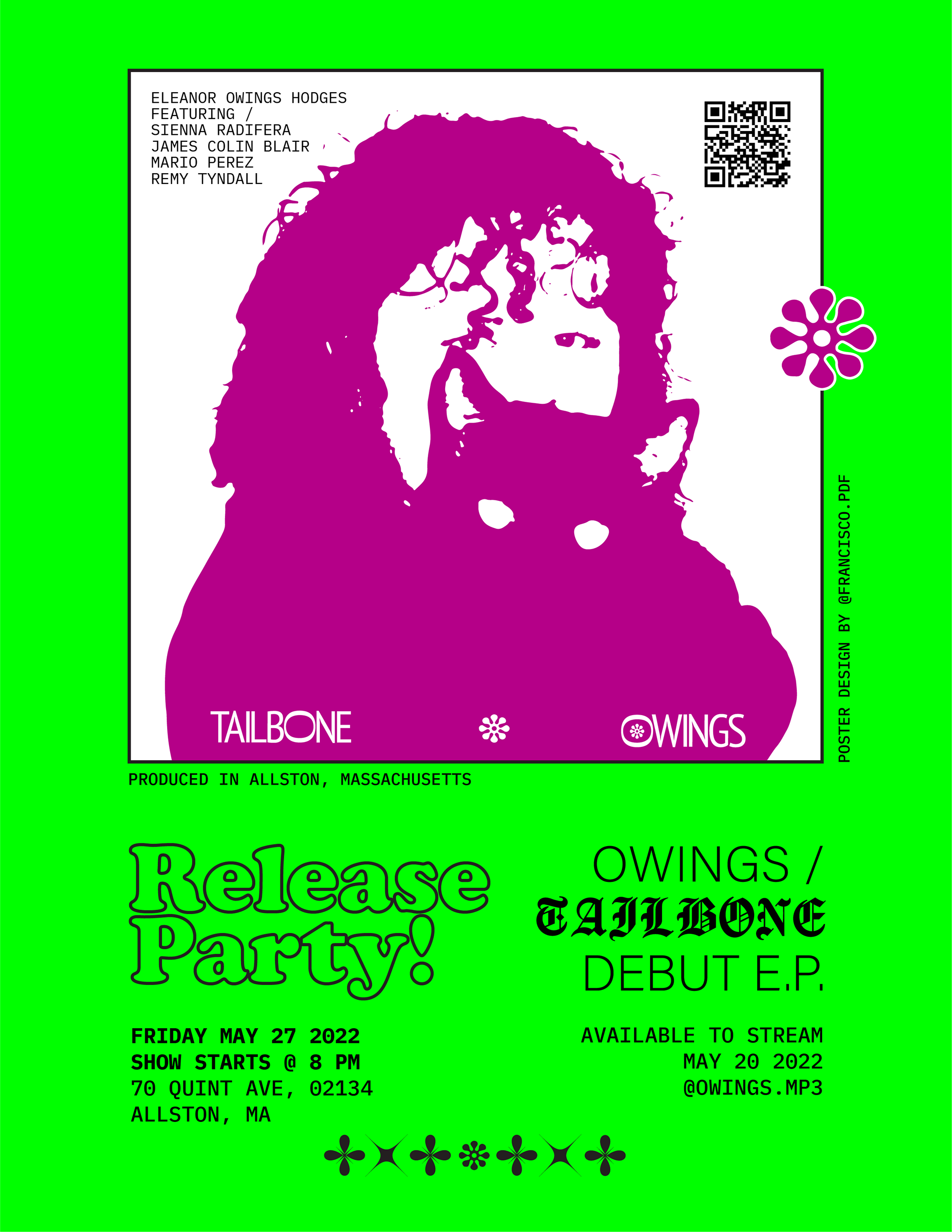 Album Artwork and Promotional Designs for Owing's debut EP "Tailbone". Boston, 2022.